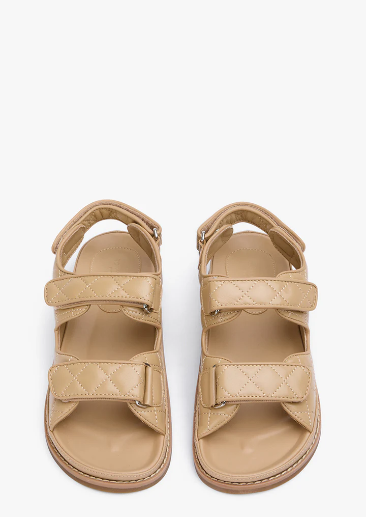 Meet our latest down-time must have, the Hiranni flat sandals. Constructed with a cushioned foot-bed and thick cross-foot velcro straps, the Hiranni features adjustable straps and quilted detailing, alongside an exposed sole, leather upper and all new leather lining. The perfect off-duty all-rounder that you won't want to take off.