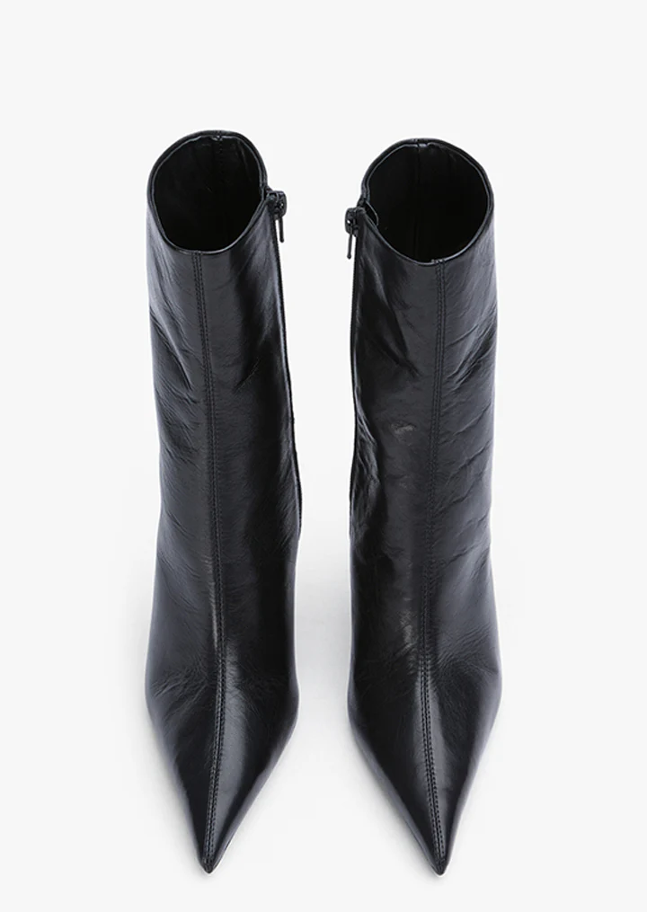 Channel it girl energy with this sleek ankle boot, featuring a stiletto heel and pointed toe. Irisā bold design adds an instant edge to any outfit, perfect for making a statement on the go.