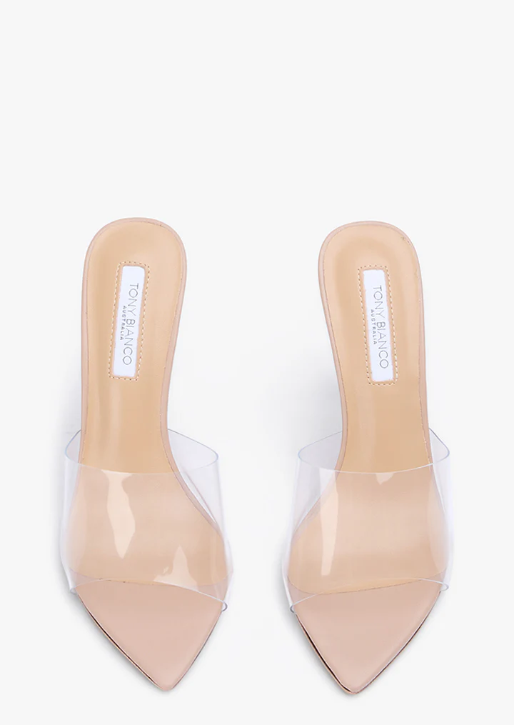 Point yourself in the right direction with our Marley vynalite mules. Pointed to perfection, this heeled mule showcases a transparent upper with a quality leather lining and comfortably cushioned sole. Finished with a leg-lengthening 10.5cm stiletto heel for the ultimate win.