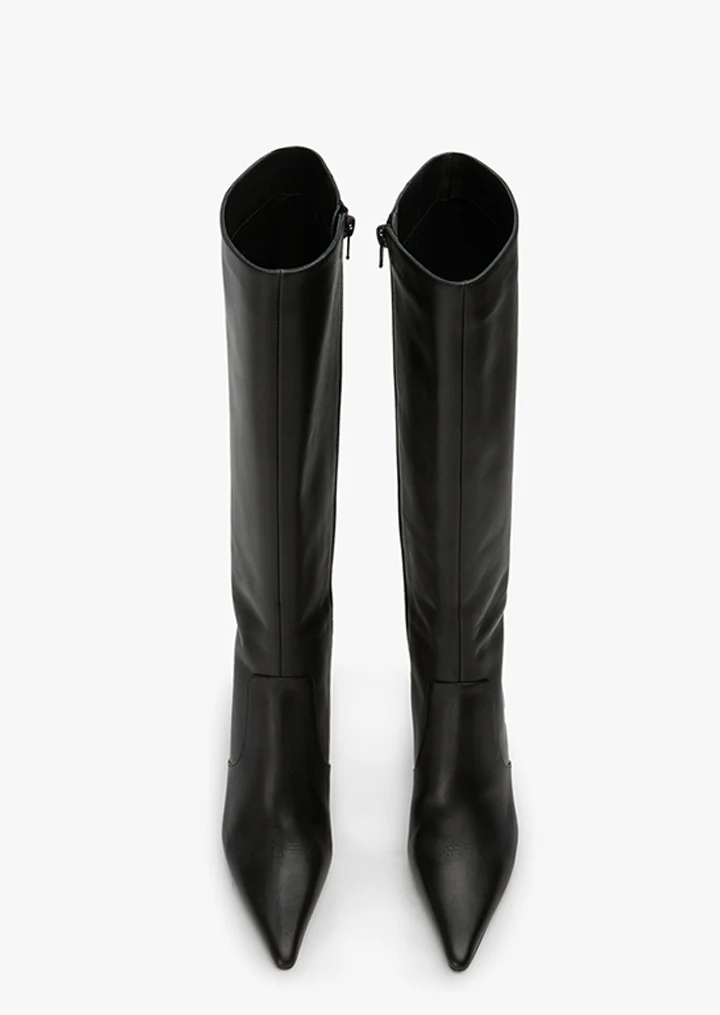 Introducing Shaq. Featuring a slender stiletto heel and pointed toe, this knee-high boot is bound to become your go-to this season and beyond.